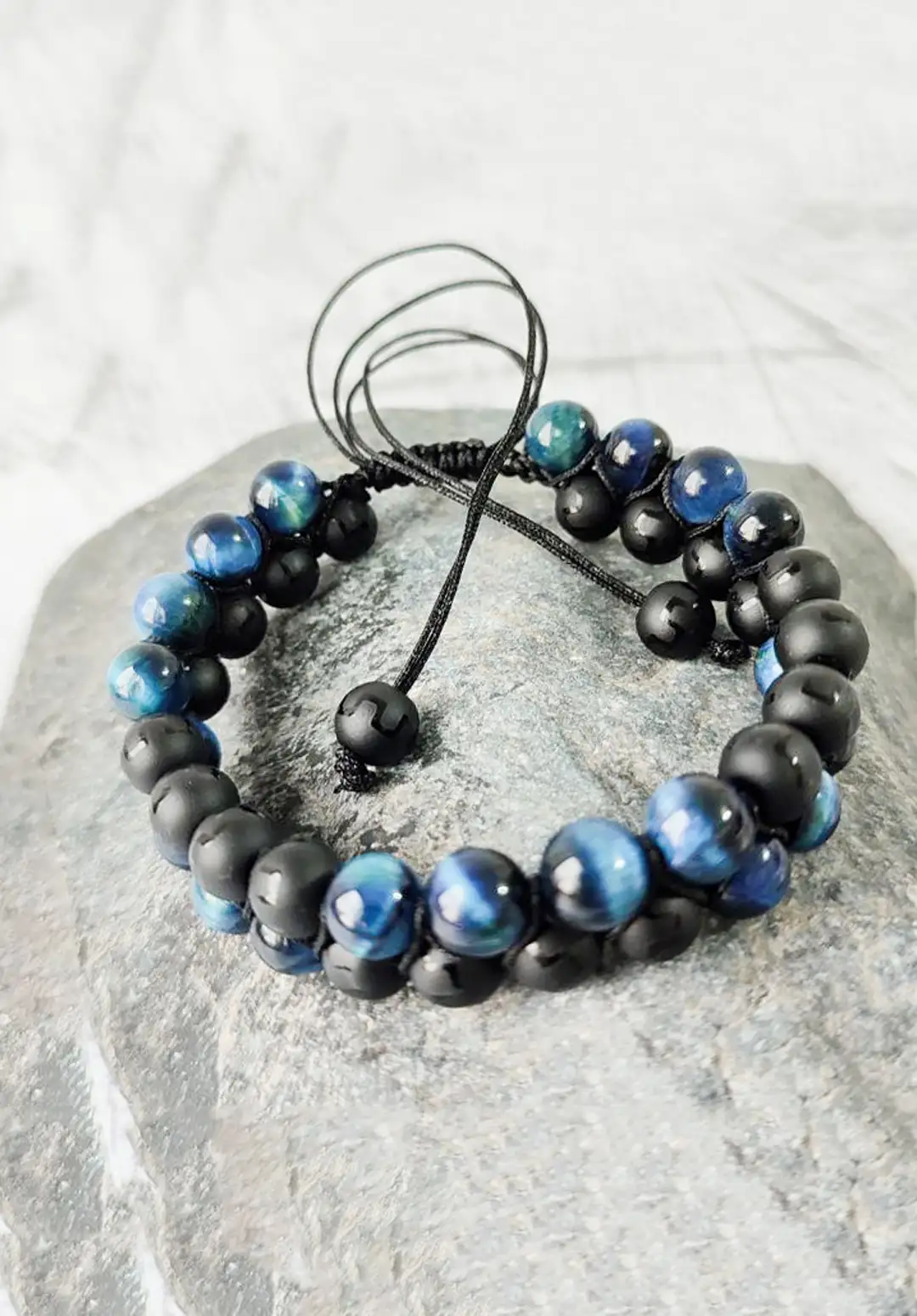 ما در اورهان از سنگهای طبیعی چشم شاهین آبی و اونیکس مات استفاده کردیم تا داستانی از زمین و آسمان بسازیم. هر سنگ در این دستبند معنای خودش را دارد؛ چشم شاهین با درخششی عمیق از تمرکز و آگاهی سخن میگوید، و اونیکس با رنگ تیرهاش سکوت، استقامت و وقار را یادآور میشود.