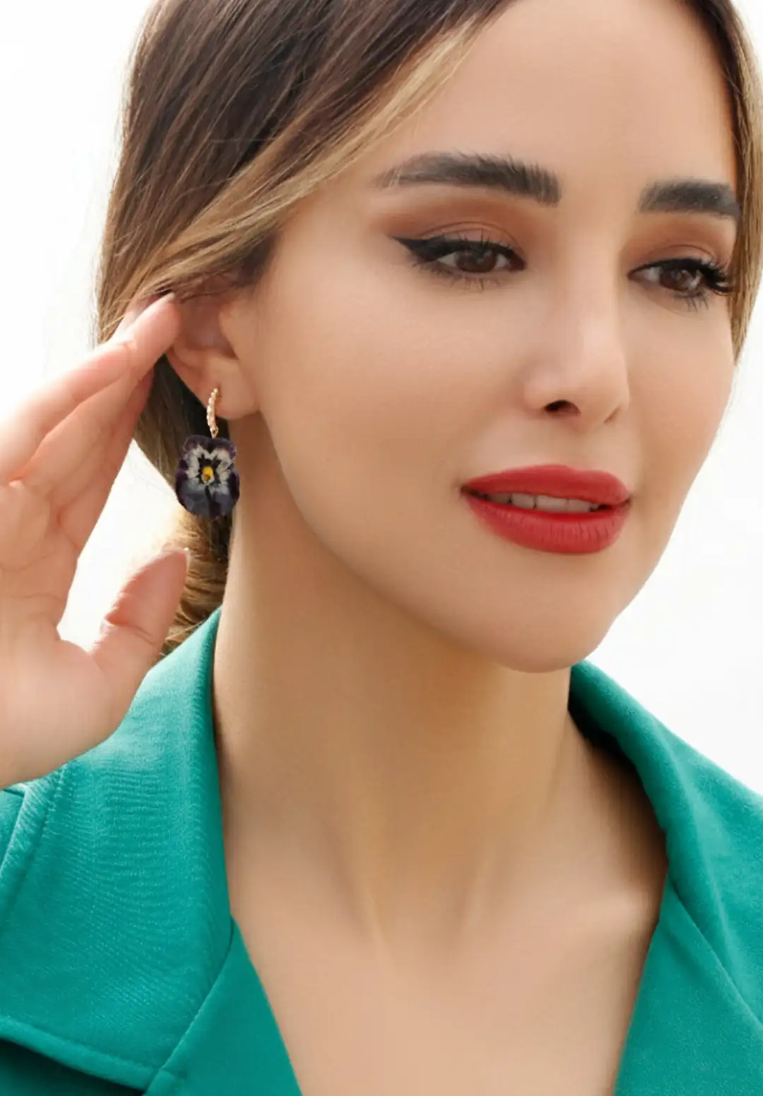 ما در طراحی آرتمیس از بنفشههای کوچک طبیعی استفاده کردهایم، چون باور داریم ظرافت این گل میتواند داستانی تازه به گوشواره بدهد.