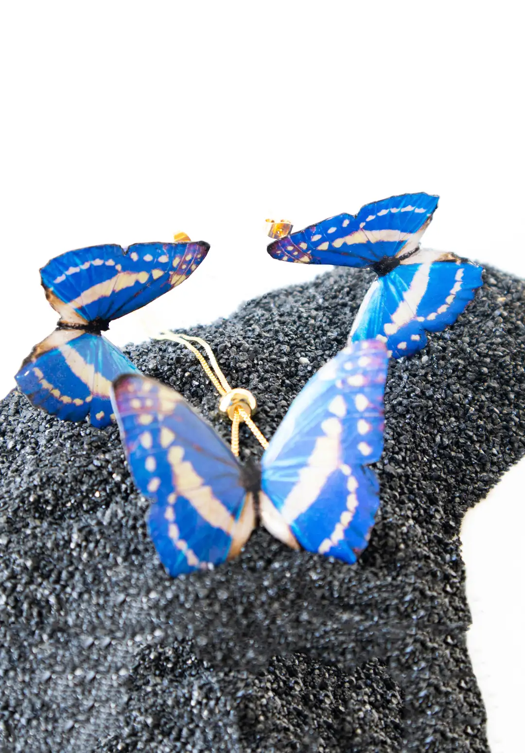 گوشواره پروانه آبی آوان | طراحی رزینی سبک با میخ استیل ضدزنگ
