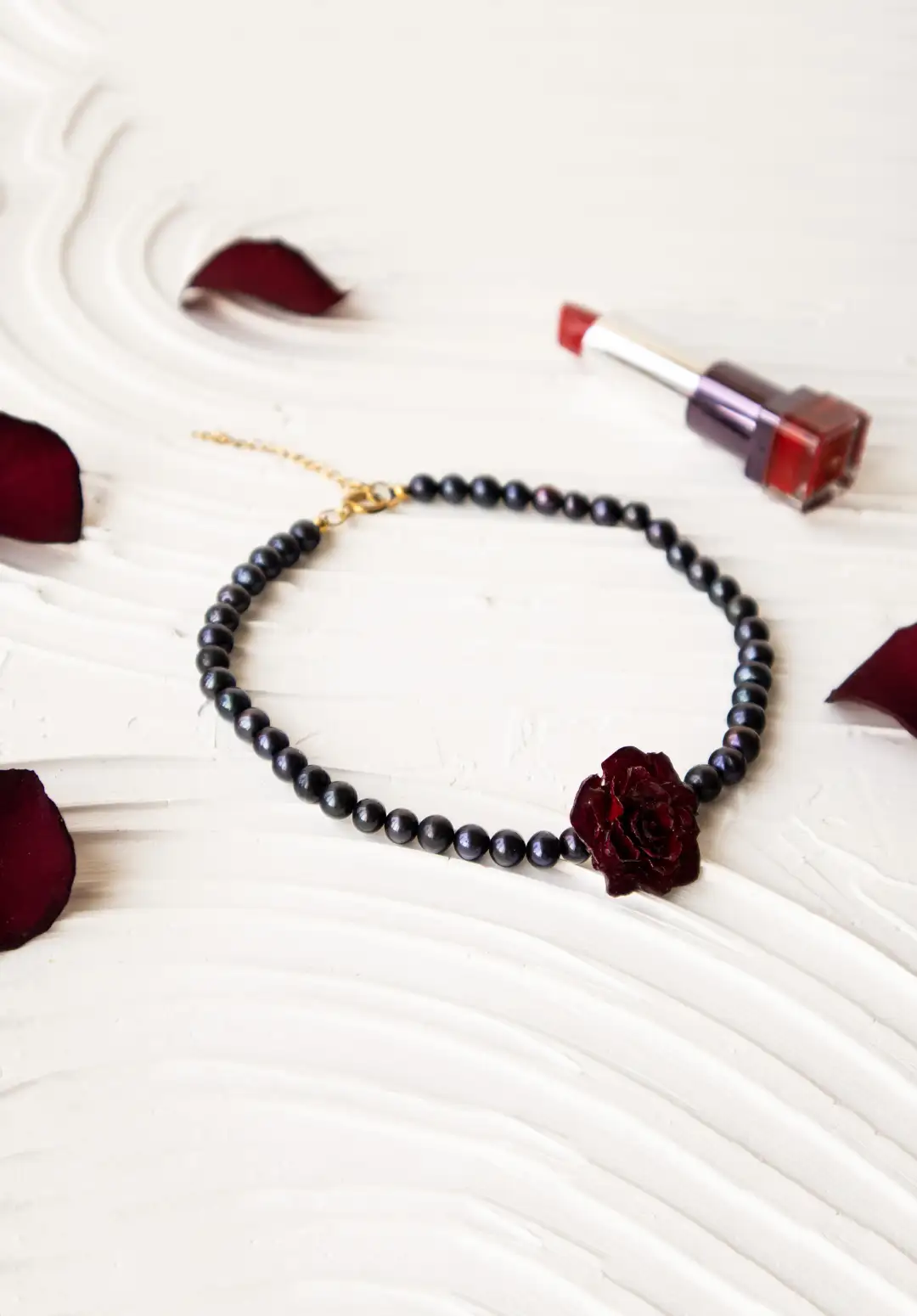 در یک دیدار عاشقانه، حضور رز و مروارید ترکیبی شاعرانه و رمانتیک ایجاد میکند که حال و هوای لحظه را تغییر میدهد. حتی در عکاسی پرتره نیز گردنبند ریماس با تضاد رنگها و حضور یک گل طبیعی در میان مرواریدها، تصویری خاص و ماندگار خلق میکند.