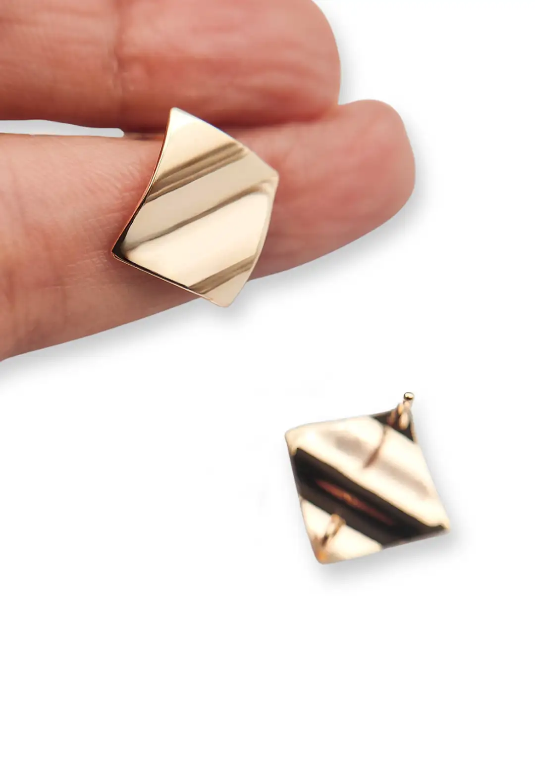 این مدل به دلیل فرم خاص، سطح صیقلی، مواج و رنگ طلایی یا نقرهای براق، هم بهعنوان پایه گوشواره و هم بهصورت گوشواره مستقل قابل استفاده است.