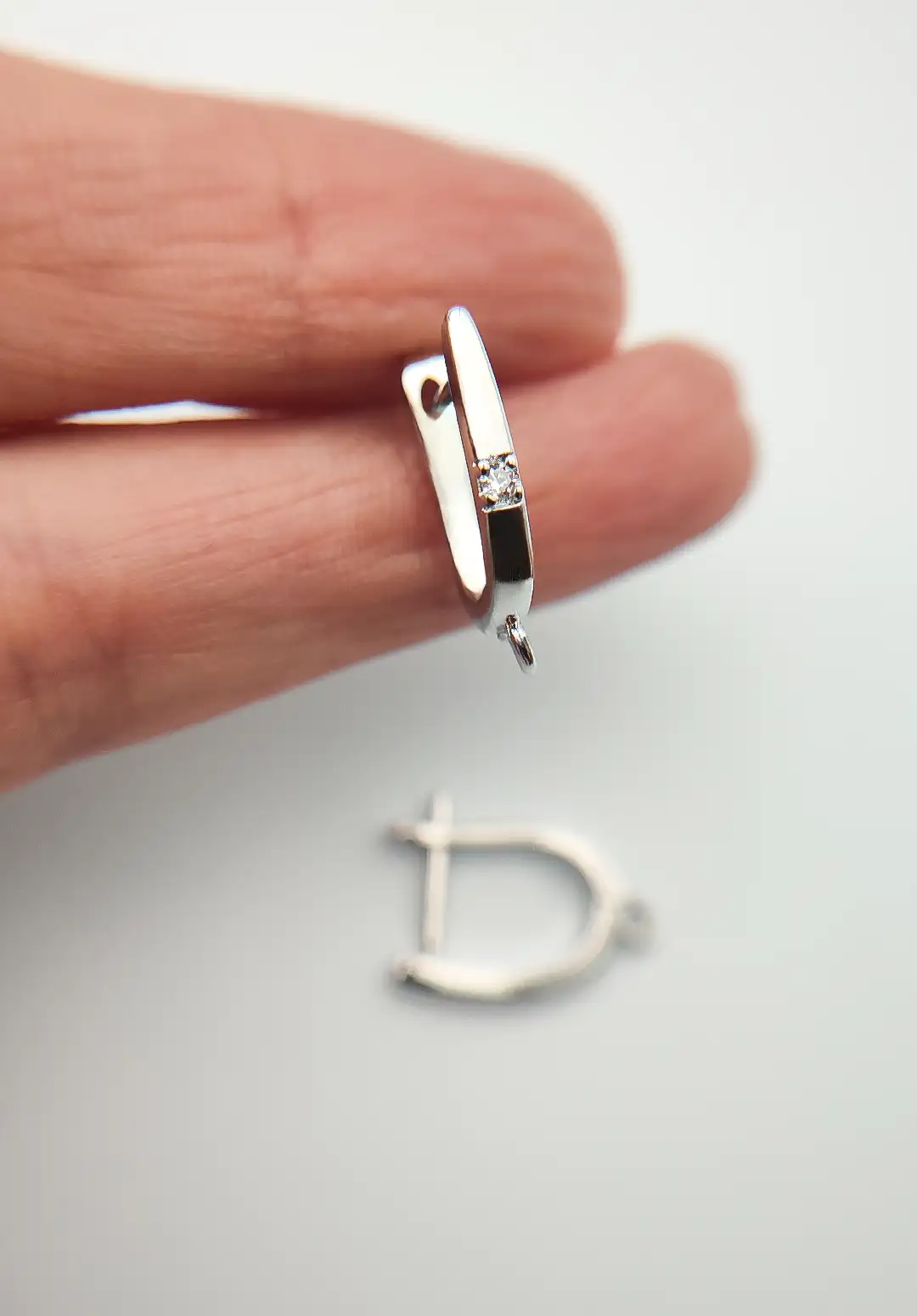 پایه گوشواره حلقهای قفل دار کوچک نگیندار نقره ای با آبکاری رادیوم