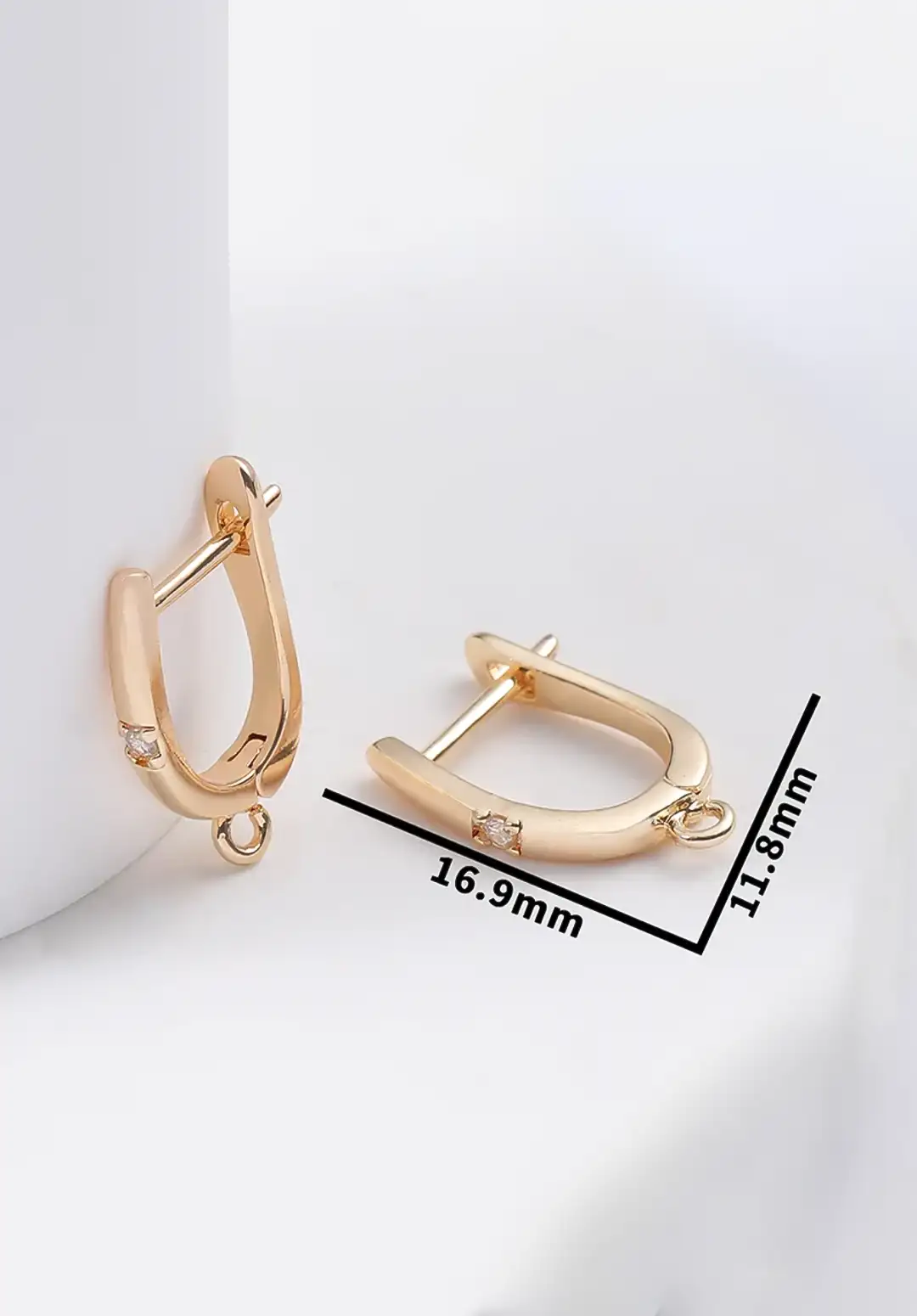 پایه گوشواره حلقه ای قفل دار آب طلا 18 عیار با نگین زیرکنیا بدون تغییر رنگ