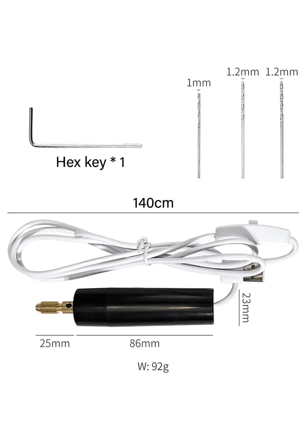 تغذیه مستقیم با USB، طراحی قلمی، کنترل بالا و وجود ۳ مته کاربردی، این دستگاه را به انتخابی عالی برای هنرمندان رزین و سازندگان زیورآلات دستساز تبدیل کرده است.